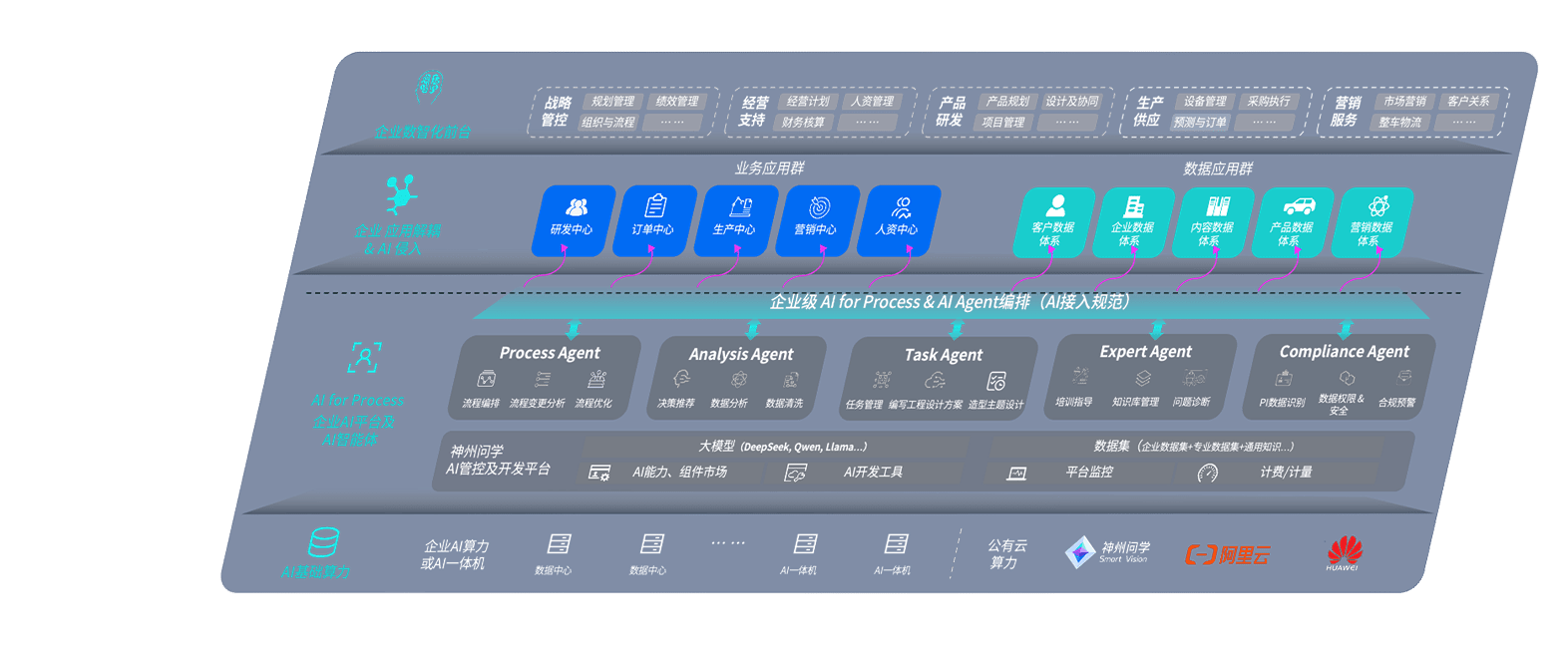 彩神问学智车解决方案是一套基于AI技术的汽车行业智能化系统,,,覆盖从底层算力到顶层AI应用的全栈方案。。。。方案由算力层、、模型层和应用层组成:算力层,,,,方案支持多种一体机配置,,,,具备云端灵活部署、、、多云适配以及动态优化计算资源的能力;模型层,,,,彩神问学平台版提供了企业级AI应用一站式构建与管理平台,,支持基于后训练强化技术的汽车企业专属模型的训练、、、、评测和运营;应用层,,,彩神问学DeepSeek版提供包括超级员工、、、、智能招采、、、、智能营销、、智能客服、、、、AI for BI等一系列解决方案,,可助力汽车行业实现数字化转型,,让管理更智能、、响应更敏捷。。。。