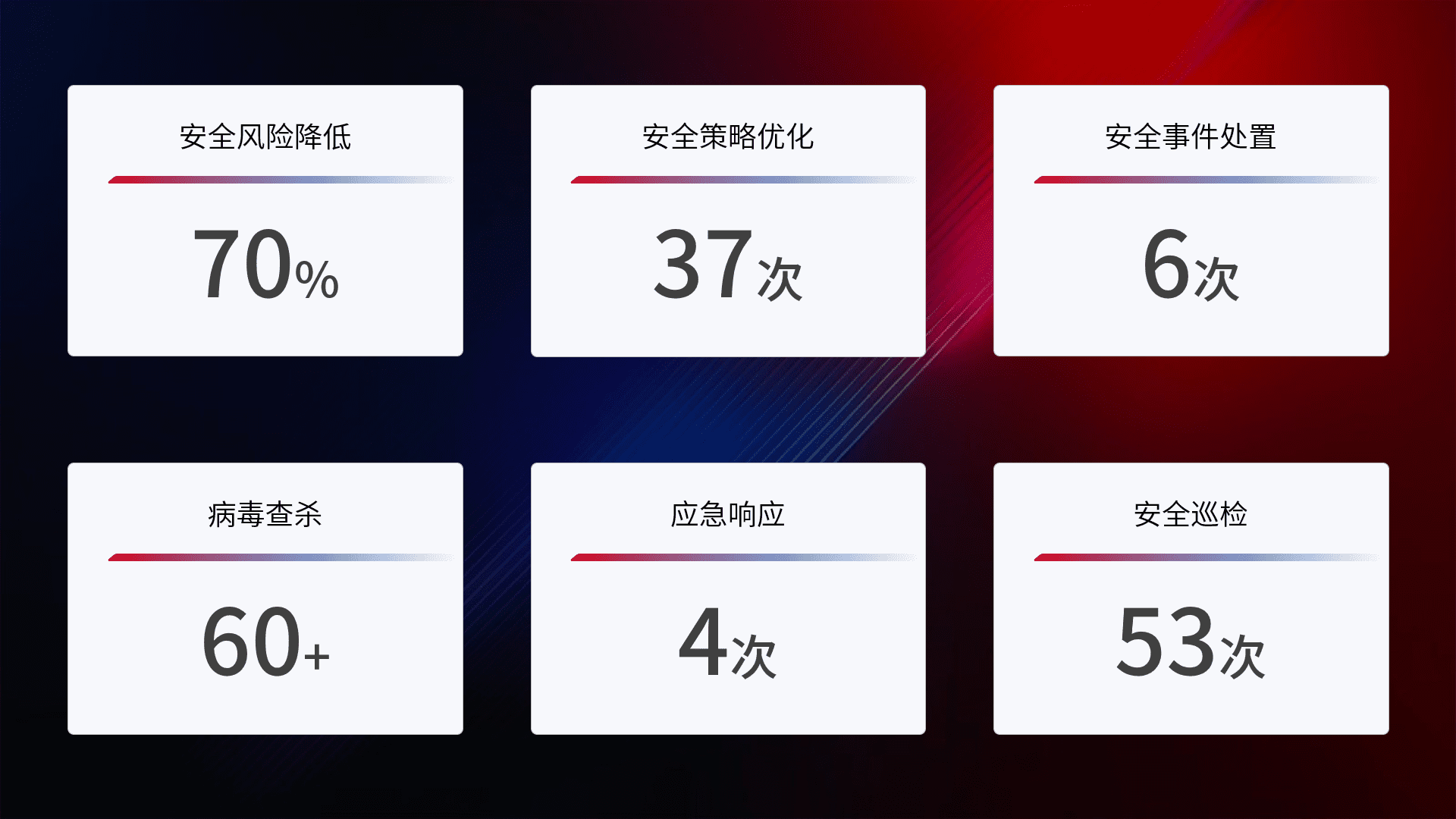 提供全面的安全事件报告体系,,包括处置报告、、、、周报、、季度和年度总结,,,结合持续监控,,,,帮助客户深入了解网络安全状况。。